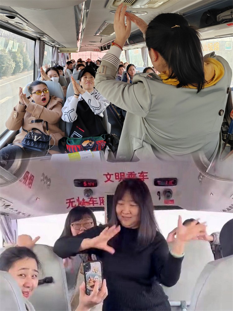 在一個多小時的車程中,工會女工委員們?yōu)榇蠹以敿毥榻B了鄭國渠的歷史背景,組織了猜歌曲、猜數(shù)字與桌操舞蹈等小活動,大家紛紛參與到互動游戲中來,車廂中彌漫著歡樂喧鬧的輕松氣氛。