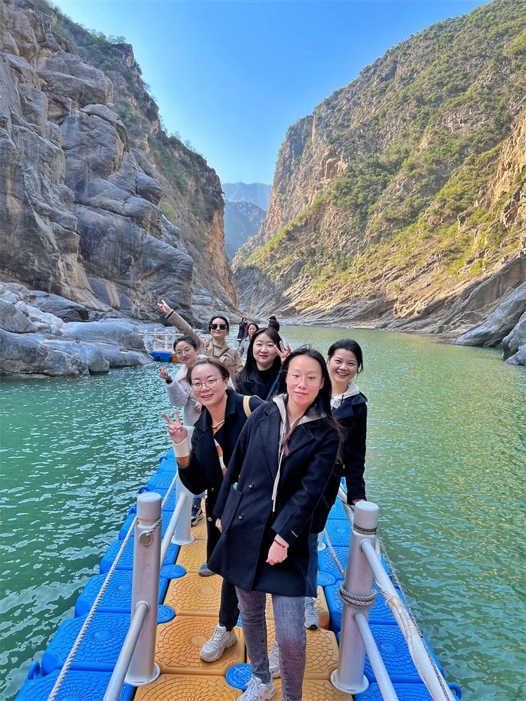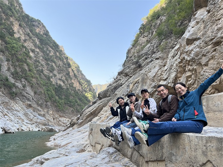 在一路歡聲笑語中,大家到達了鄭國渠景區(qū)。沿著山邊步道,拾級而下,賞春踏青,開啟了涇河漫步之旅。山的崎嶇呼應著峽的險峻,水的靈秀映襯著石的詭譎,完美的詮釋了大自然的鬼斧神工。大家行走在棧道隧洞之間,相伴于碧水藍天之際,工作一周的疲憊已然消散不見。